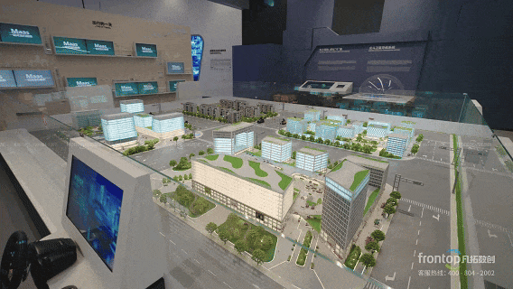凡拓数创团队设计打造车联万物主题大型交互场景沙盘,集中演示了超视距感知技术与车路协同三大应用场景。