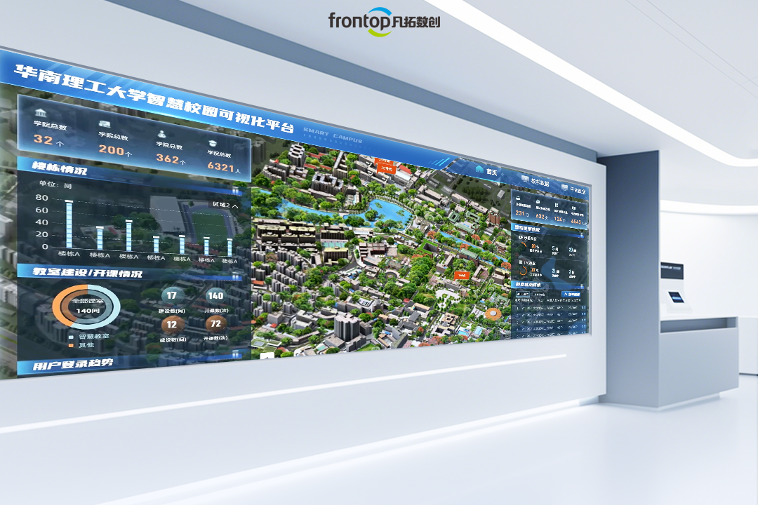 凡拓助力华南理工大学构建智慧校园数字孪生IOC管理平台,实现三大校区统一智慧管理与资源智能配置。