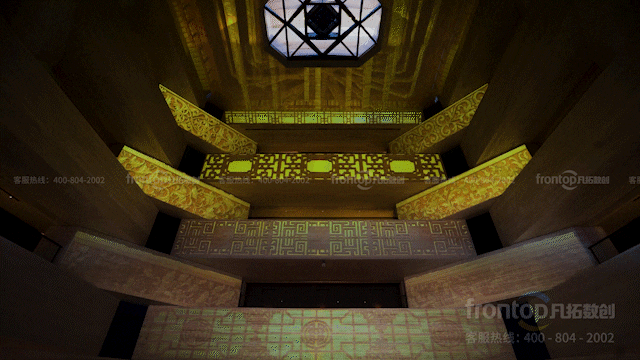 凡拓数创在不破坏建筑结构的基础上,创意结合3D Mapping投影技术,将其演绎为保藏中华文明财富的“华夏册府”藏书阁。