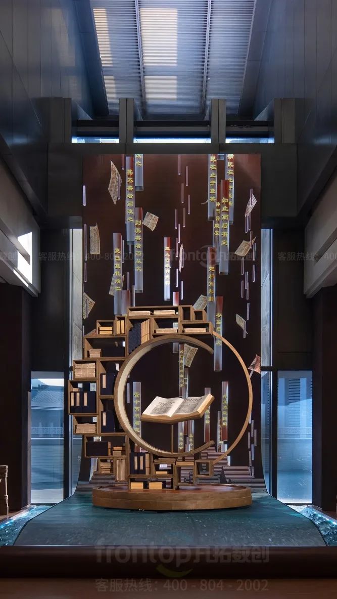 凡拓的展示创意不囿于四个常设展览空间,大胆将展览叙事融入主体建筑的空间,使空间成为文化信息的承载。置身于由版本构筑起的历史长河之中,如同读故事一般感受波澜壮阔的历史篇章。