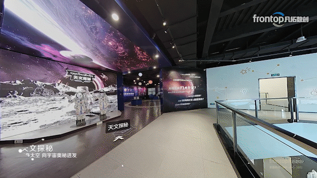 凡拓数创团队围绕“探索·创新”的主题打造该科普中心,利用大空间设计、场景式布展内容,为青少年们创造了一个学习科学知识、建立科学思维、认知强大国力、坚定文化自信的知识宝库。