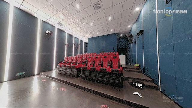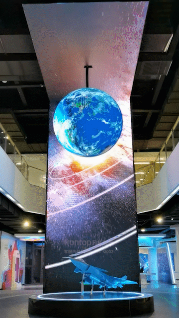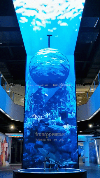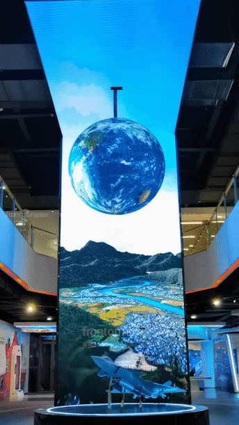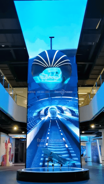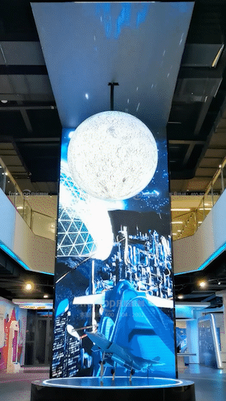 沿着战机直冲而上的是纵贯两层的LED巨幕和悬挂球幕,三者联动构成了“开眼看世界”剧场。