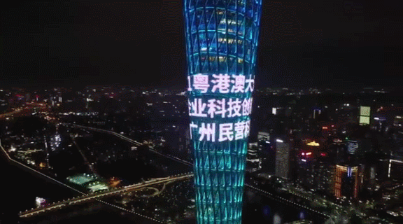 飞屏联动系统展示《粤港澳大湾区发展规划纲要》及白云区发展概况。