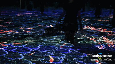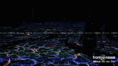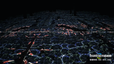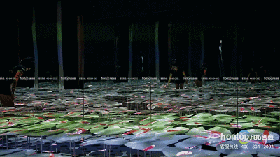 荷塘夜色机械互动艺术装置,创新以荷塘作为主场景,以 “小径”作为贯穿整个场景的动线,通过数字投影技术赋予场景春夏秋冬的变幻。