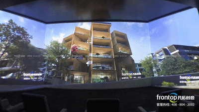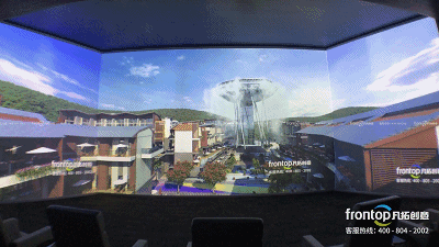 三折幕沉浸式影像空间与磅礴大气的立体三维视觉影片相结合,让参观者感觉特色建筑近在眼前,产生震撼的视觉冲击及强烈沉浸感。
