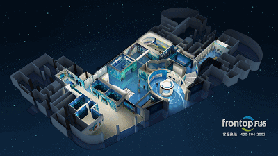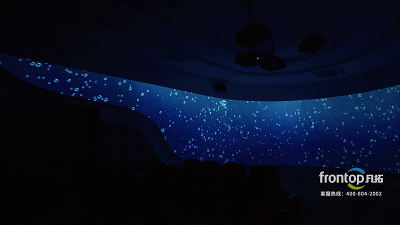 海洋星球影厅采用半包裹式弧幕投影设计,在震撼视觉特效中以科普角度演绎海洋星球演变,溯源海洋文化。