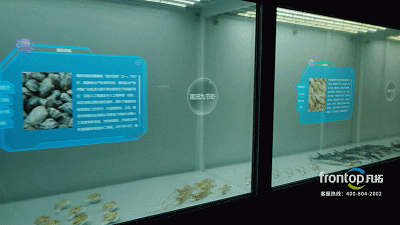 实物陈列与触控透明橱窗相结合,对莆田渔业十珍生长习性、营养价值、特色菜谱等进行详细介绍,参观者可通过触控屏幕进行查询了解。