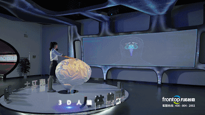 3D人脑互动与免疫细胞体验区:触摸人脑模型,触发播放大脑基本结构的介绍影像