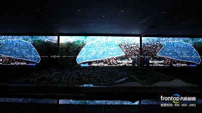LED大屏联动大型声光电数字沙盘,全方位浓缩呈现沙湾特色小镇瑰宝蓝图。