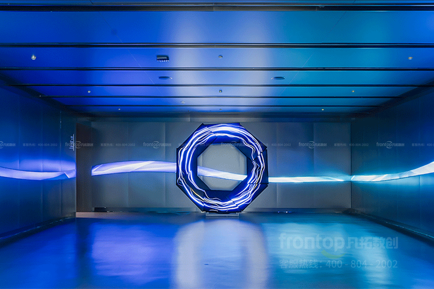 凡拓数创团队通过可视化、智慧化技术应用,将数字艺术巧妙置于深圳新一代产业园发展图景,在流光溢彩的视觉盛宴中,全方位呈现园区的科技实力和孵化能力,助力实现大湾区跨界人才互动与优秀企业的精准引入,引领产业调整升级与区域高质量发展。