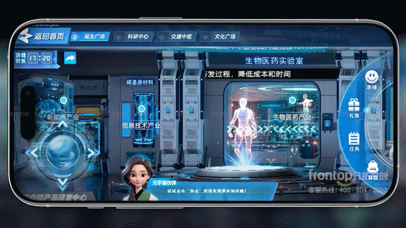 巨幕影院一键切换元宇宙沉浸游戏空间,团队综合运用AI+三维实时渲染+线上线下多线程交互,打造超越时空的多人同步游玩体验,引领市民身临其境体验未来之城的尖端技术与高效生活。