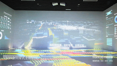 BOX全沉浸式影院通过三维立体投影结合三维数字影像技术,多层次剖析演绎数字连云港未来的时空大数据三维可视化。BOX全景空间基于GIS的时空数据的多维表达,叠加多类型数据,并对复杂信息进行处理、表现和分析,实现多维动态信息可视化。